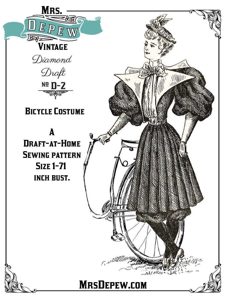 Diamond D A H Antique Vintage Sewing Pattern 1890s Ladies Bicycle Costume Any Size Plus Size D 2