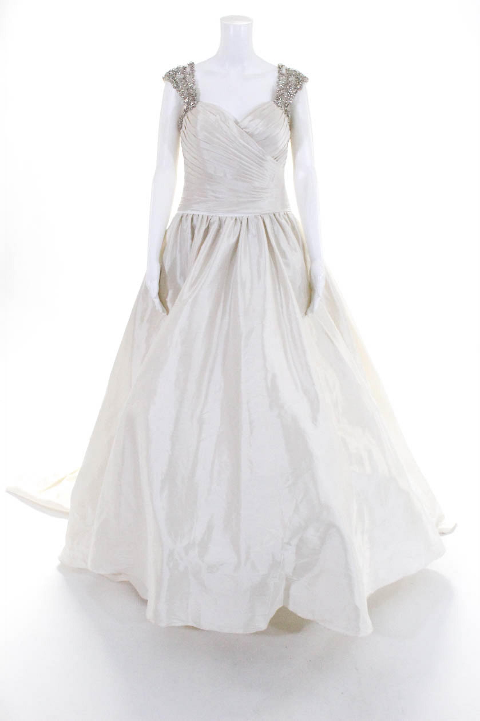 Designer Womens Crystal Beaded Trim Pintuck Wedding Gown Ivory Silver Size 12 Walmart Com